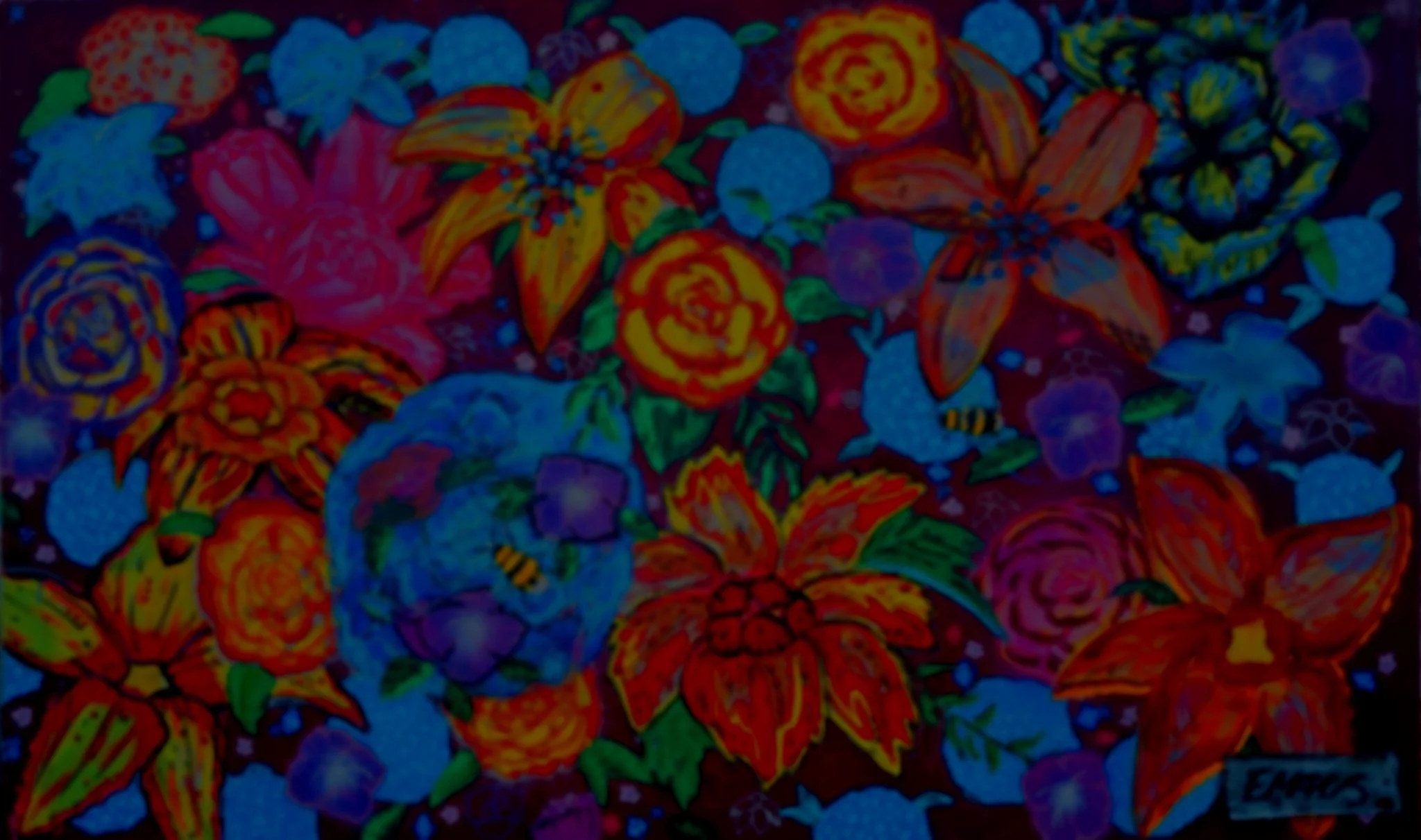 Made with acrylic paint, water color, markers charcoal, soft & hard pastels.
